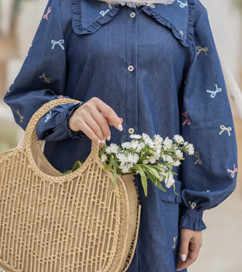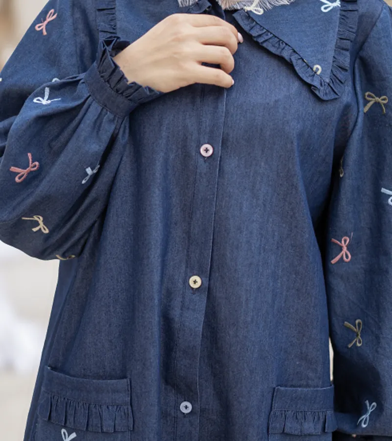 مانتو بلند جین گلدوزی پاپیونی 85004