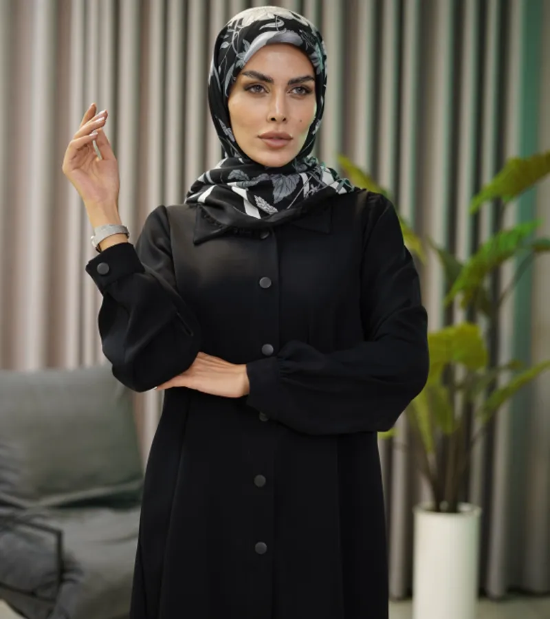 عبا آستین گت دار مشکی کرپ ندا فری سایز
