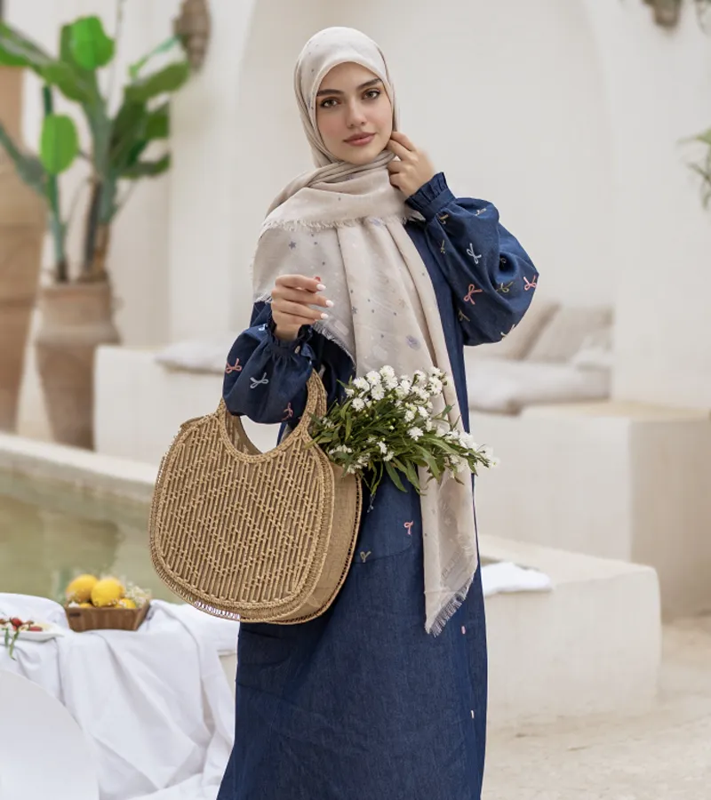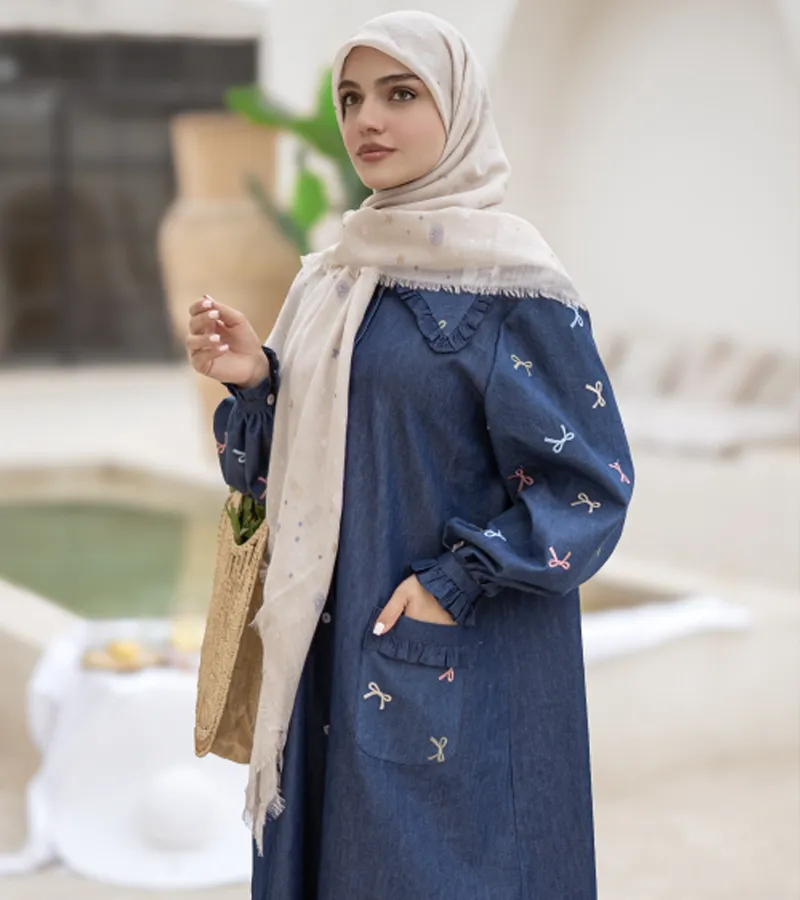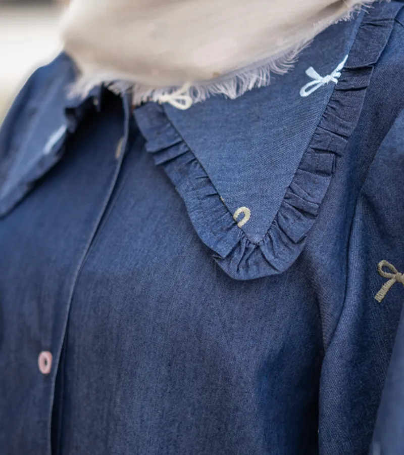 مانتو بلند جین گلدوزی پاپیونی 85004